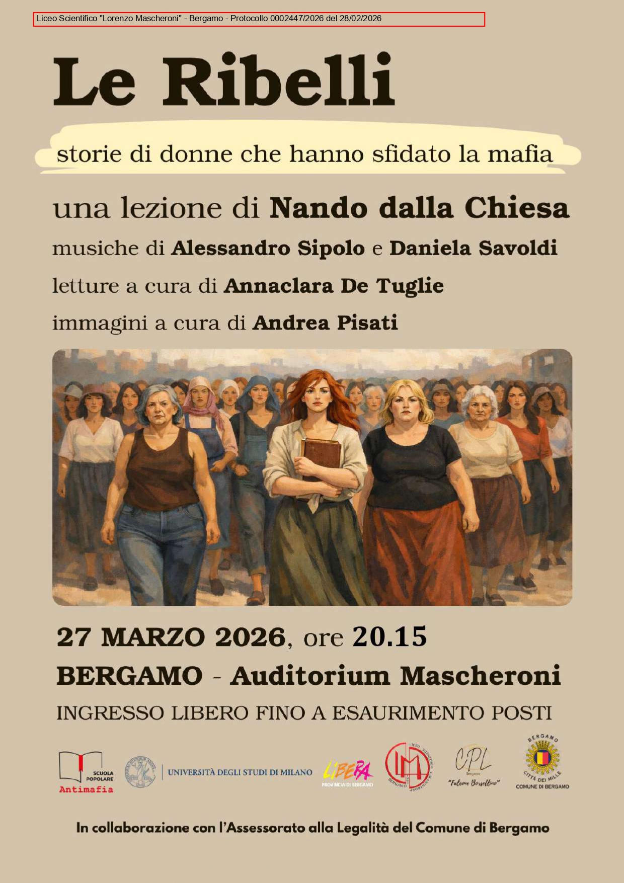 Si comunica che tutta la comunità scolastica è invitata a partecipare alla seguente iniziativa proposta dal C.P.L. di Bergamo, in collaborazione con l’Assessorato alla Legalità del Comune di