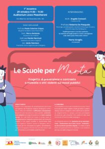 Tra novembre e marzo verrà lanciato il concorso “Tutte le scuole per Marta” aperto a tutti gli istituti superiori della provincia di Bergamo. Gli studenti e le studentesse, singolarmente o in gruppo, potranno partecipare al concorso, per proporre il loro punto di vista sulle tematiche affrontate dalla campagna.